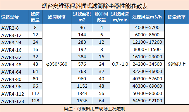 含塵氣體由進風口進入除塵器后,氣流速度減慢,粗顆粒脫離氣流沉降到集塵室內,細微粉塵隨氣流穿過濾筒時被阻于濾筒外表面,潔凈氣體由出風口排出;技術參數